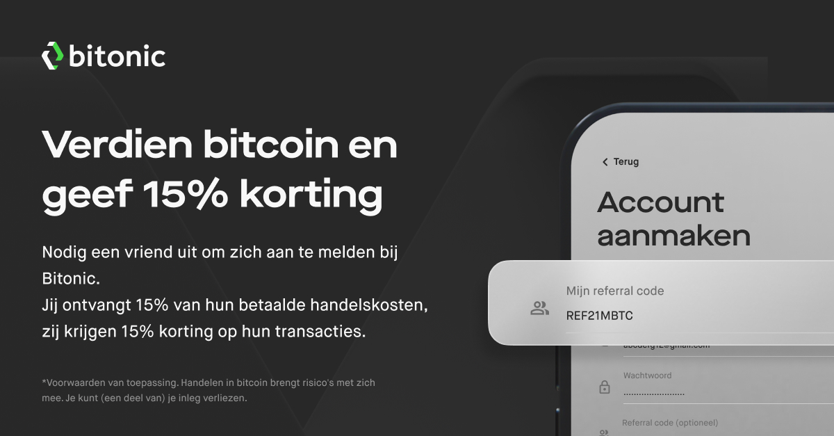 Verdien 15% van de handelskosten van je referrals - uitbetaald in bitcoin - én geef hen 15% korting.